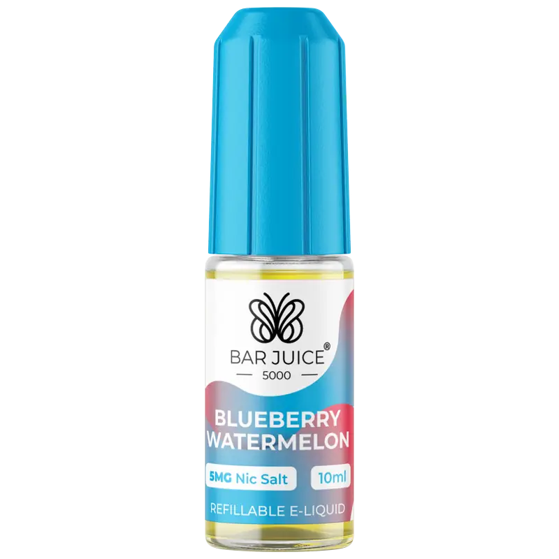 Bar Juice 5000 Blueberry Watermelon Nic Salt blends juicy blueberries with refreshing watermelon for a smooth and fruity vape. Sweet berry notes lead the inhale while the light watermelon finish delivers a clean and refreshing exhale.
