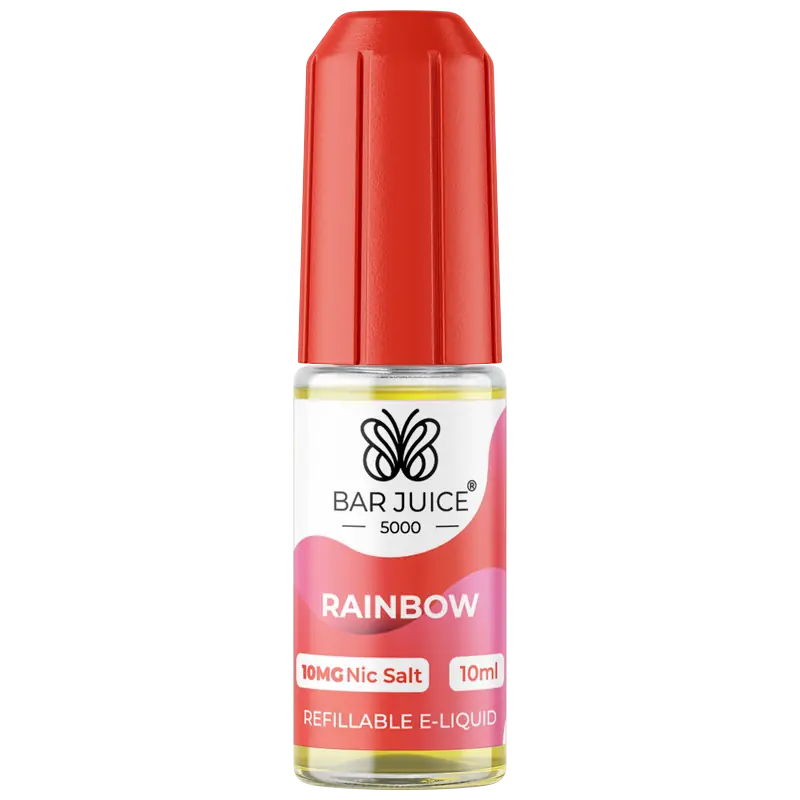 Bar Juice 5000 Rainbow Nic Salt delivers a colourful mix of fruity candy flavours inspired by classic rainbow sweets. The sweet candy inhale is followed by a smooth fruity finish.