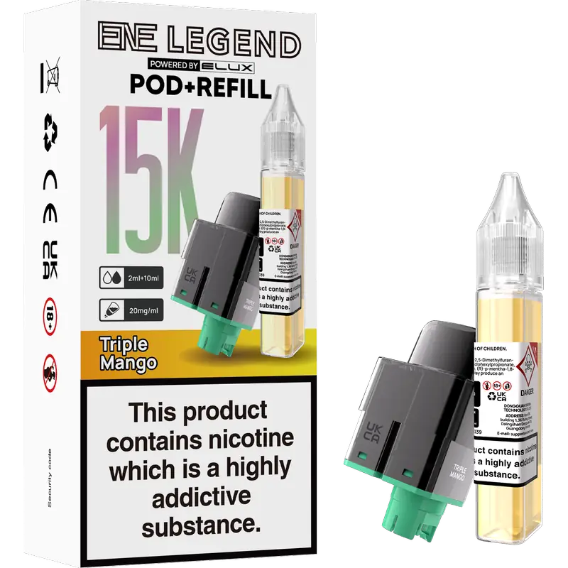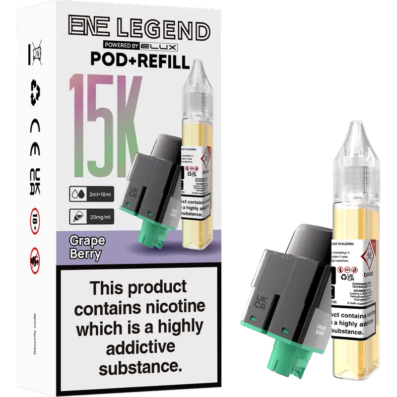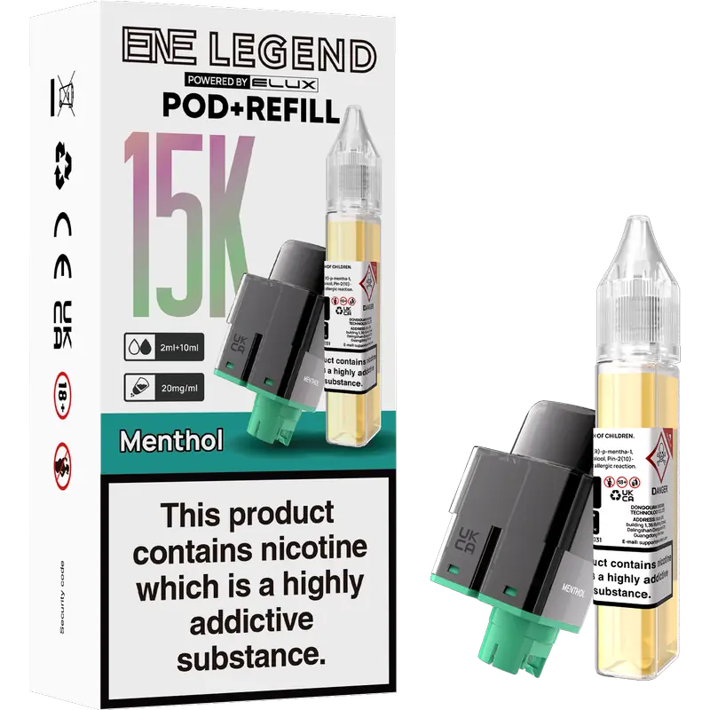 Stay stocked. Stay satisfied. This replacement set includes a 2 ml pod with a built-in mesh coil plus a 10 ml refill container, pre-formulated at 20 mg nicotine for smooth, consistent MTL vaping. Designed exclusively for the ENE Legend 15K device.