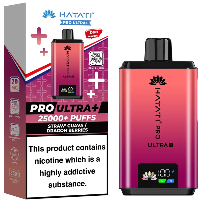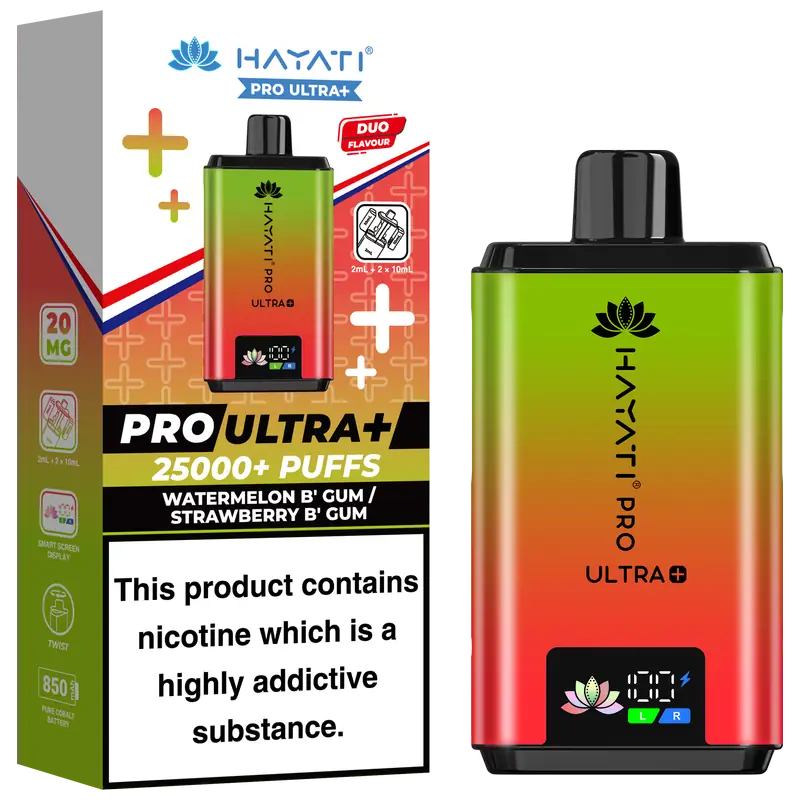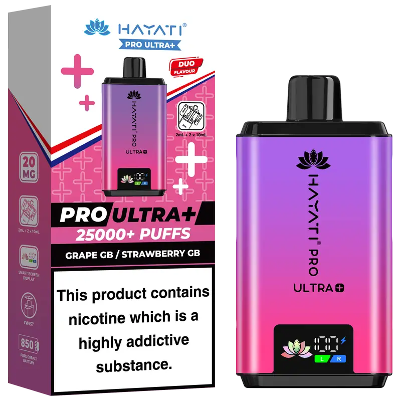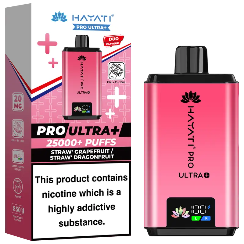 The Hayati Pro Ultra+ 25K prefilled pod kit delivers ultra-smooth flavour via a dual-mesh pod and an intuitive display for at-a-glance status. This robust upgrade packs a 1250 mAh turbo-recharging battery and easy flavour switching by pulling up and rotating the mouthpiece. When the first pod is finished, explore the brand’s 20 mg nic salt options for consistently satisfying MTL performance.