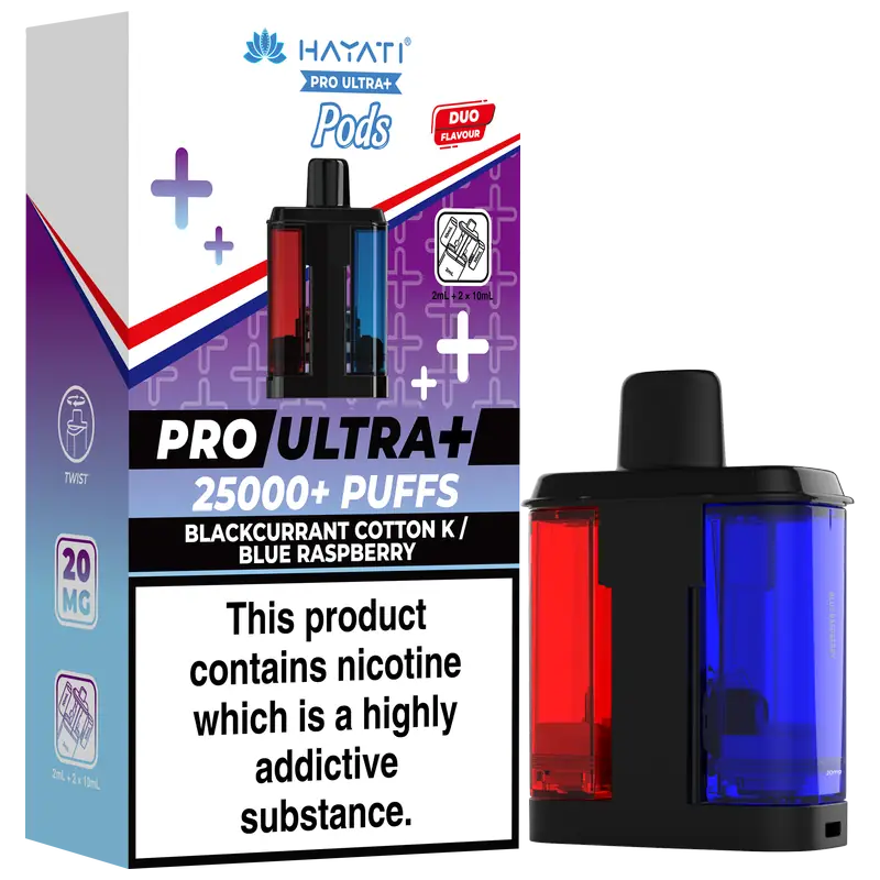 - 2 × Hayati Pro Ultra+ 10 ml auto-refilling e-liquid tanks (20 mg nic salt)