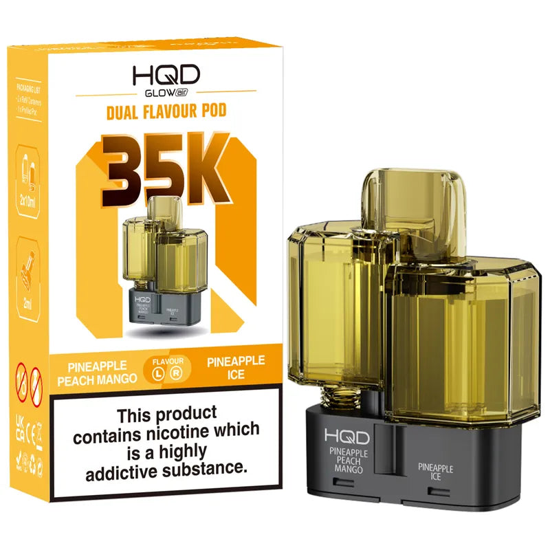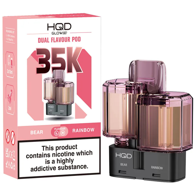 1 × HQD Glow Air 35K Prefilled Pod (22ml total: 2ml + 2 × 10ml refill chambers)