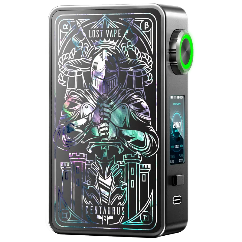 Lost Vape Centaurus M200 200w Box Mod, featuring the Quest 2.0 Chipset, temperature control suite, and powered by dual high-amp 18650 batteries.
