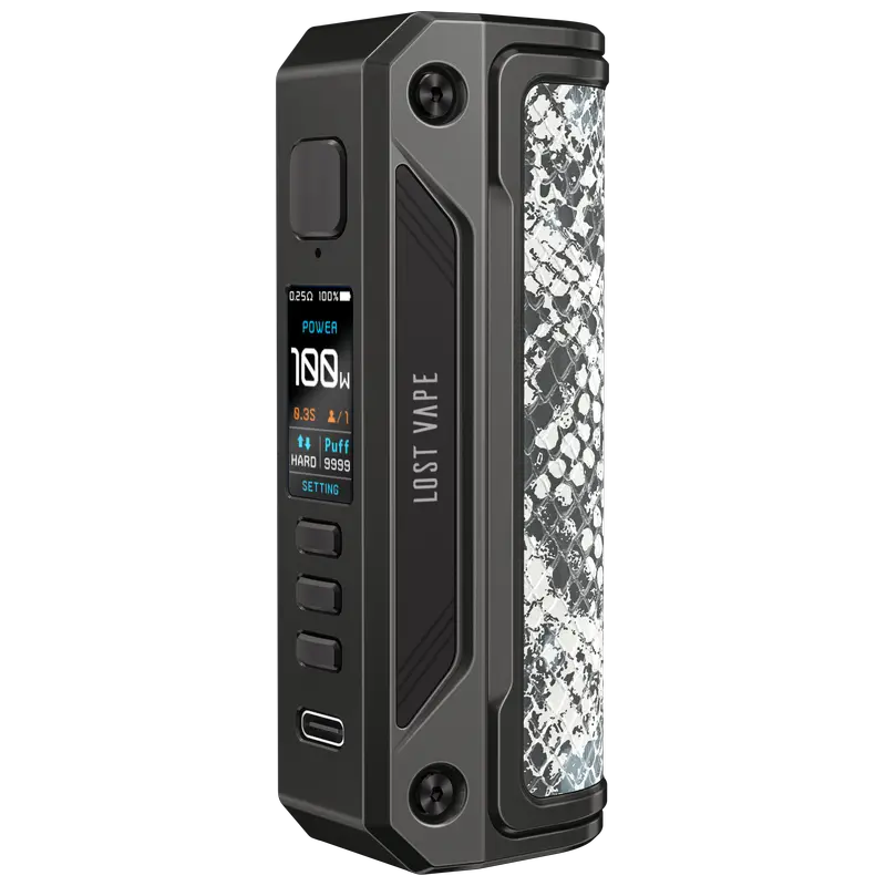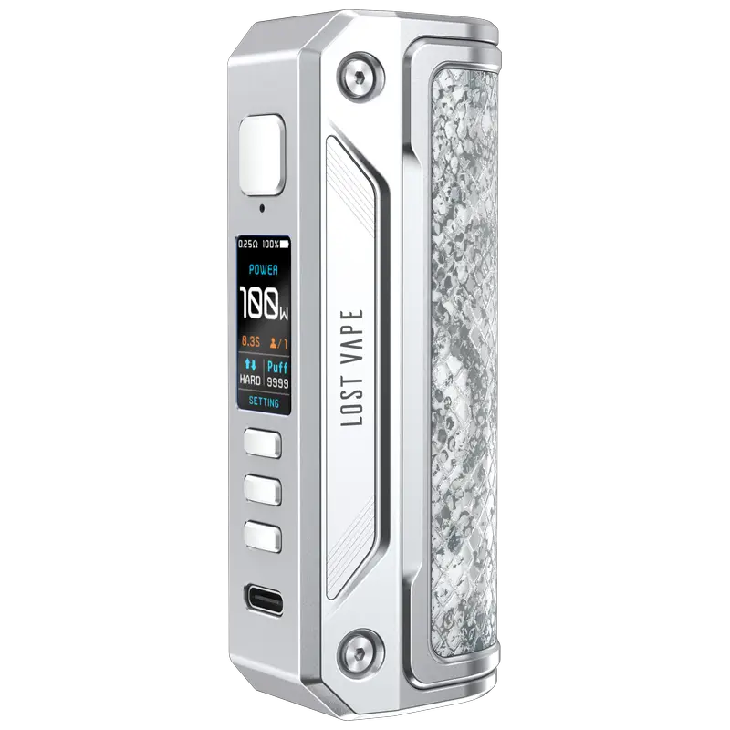 The Brand new Lost Vape Thelema Solo 100W Mod, powered by single 21700/18650 battery with max 100W output(with 21700 battery). Lost Vape Thelema Solo 100W Mod features Modern Quest 2.0 chip with multi protections and 0.96 inch TFT colour display with 6 colour schemes, easy to operate. Lost Vape Thelema Solo supports VW/ Power/ TC-SS994/ TC-SS316/ TC-Ni/ TC-Ti/ VPC/ Bypass modes to meet different needs. And Thelema Solo is compatible with up to 28mm tanks by 510 thread.