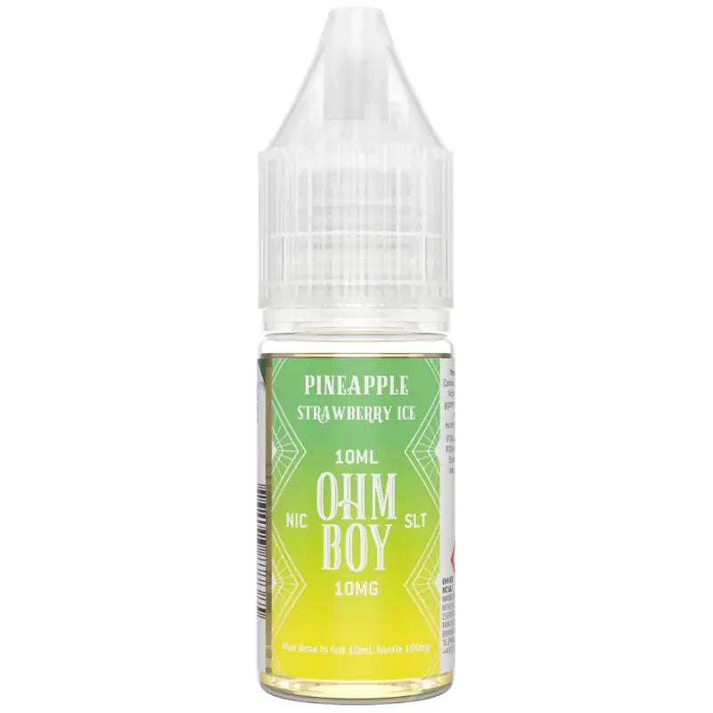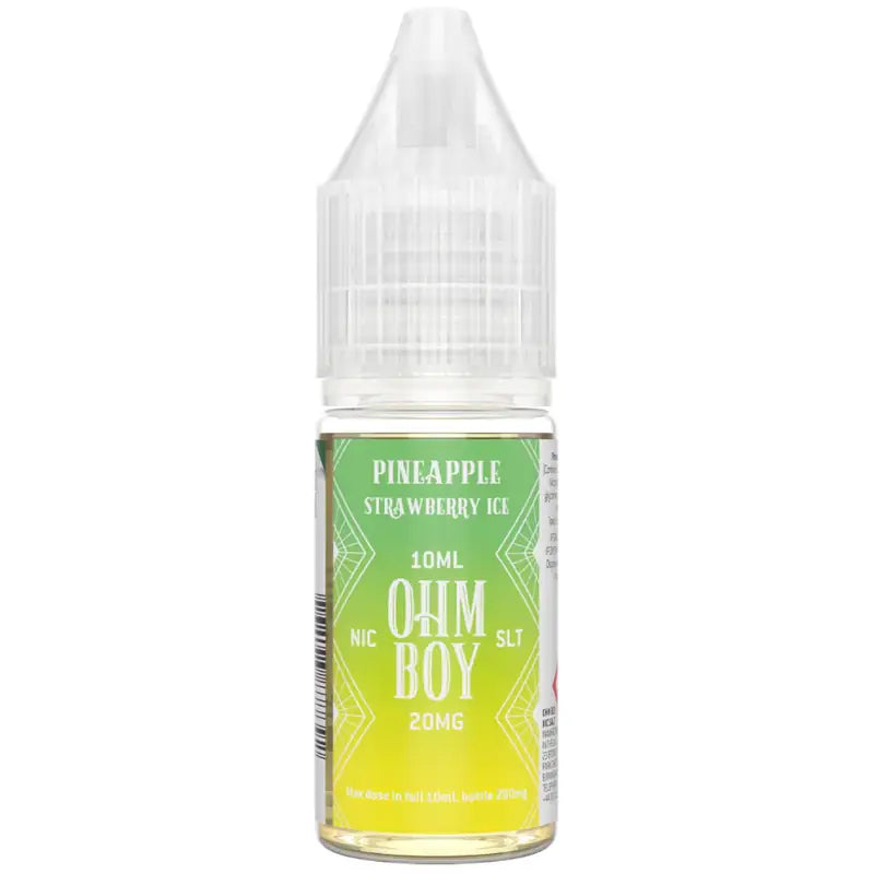 Ohm Boy SLT Pineapple Strawberry Ice - Tropics meet British in its finest form! Enjoy the delightful combination of invigorating pineapple, sweet and tart notes and the lusciousness of ripe strawberries! As you exhale, an icy chill will leave your mouth feeling refreshed and energized. Are you ready to discover the ultimate vaping experience?
