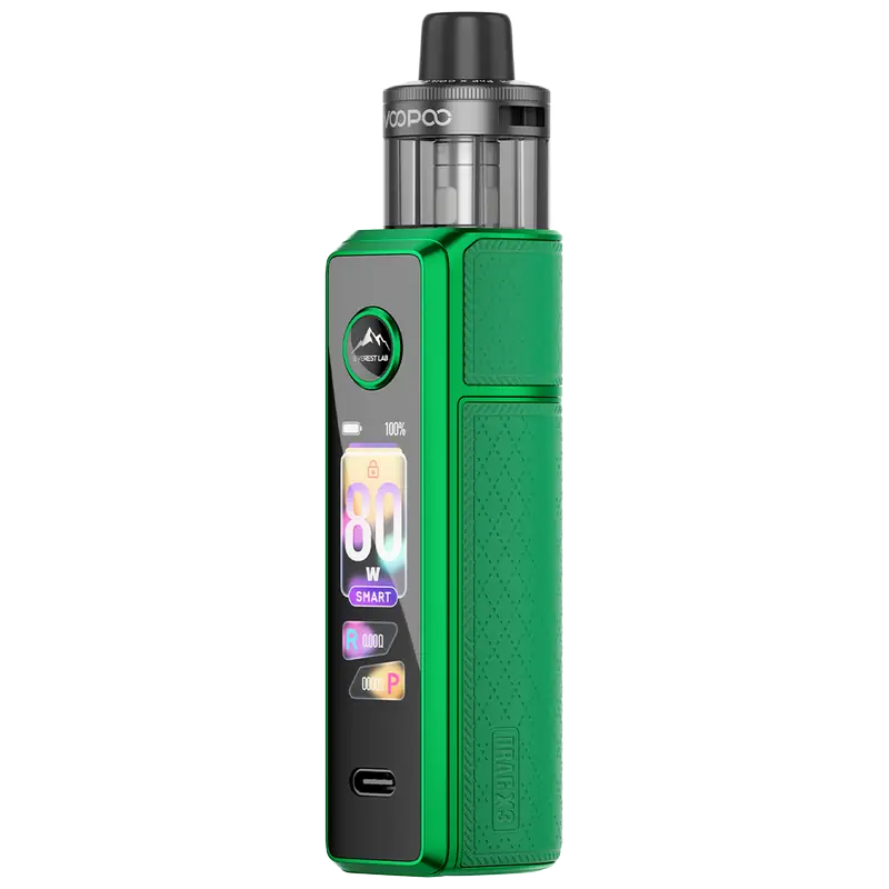 The VooPoo DRAG X3 is an 80 W pod mod that blends compact convenience with true external-battery endurance. Running on a single 18650 or 21700 cell (sold separately), it adds a bright 1.66" touchscreen and capacitive unlock for fast, secure control. Built around the PnP X platform and PnP X coils, it delivers leak-resistant performance and tuned airflow from tight MTL through open DTL an ideal step up from basic pod vape kits.
