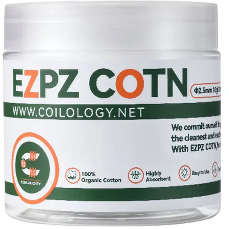 Each pack contains 10 g (0.35 oz) of organic, unbleached cotton, cut precisely for EZPZ installation. The soft, lint-free fibre delivers excellent **wicking speed**, resists dry hits, and maintains the true taste of e‑liquids.