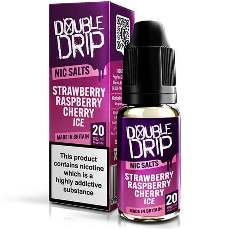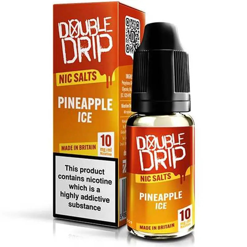 Double Drip 10 Nic Salt flavours, reformulated with double-strength concentrate for bold, bar-style taste and smooth delivery. From frosty Pineapple Ice to the layered Strawberry Raspberry Cherry Ice trio, this 10ml range pushes flavour further while keeping the polished experience Double Drip has delivered since 2016. Optimised 50VG/50PG for pod systems and MTL devices, in 10mg and 20mg strengths.