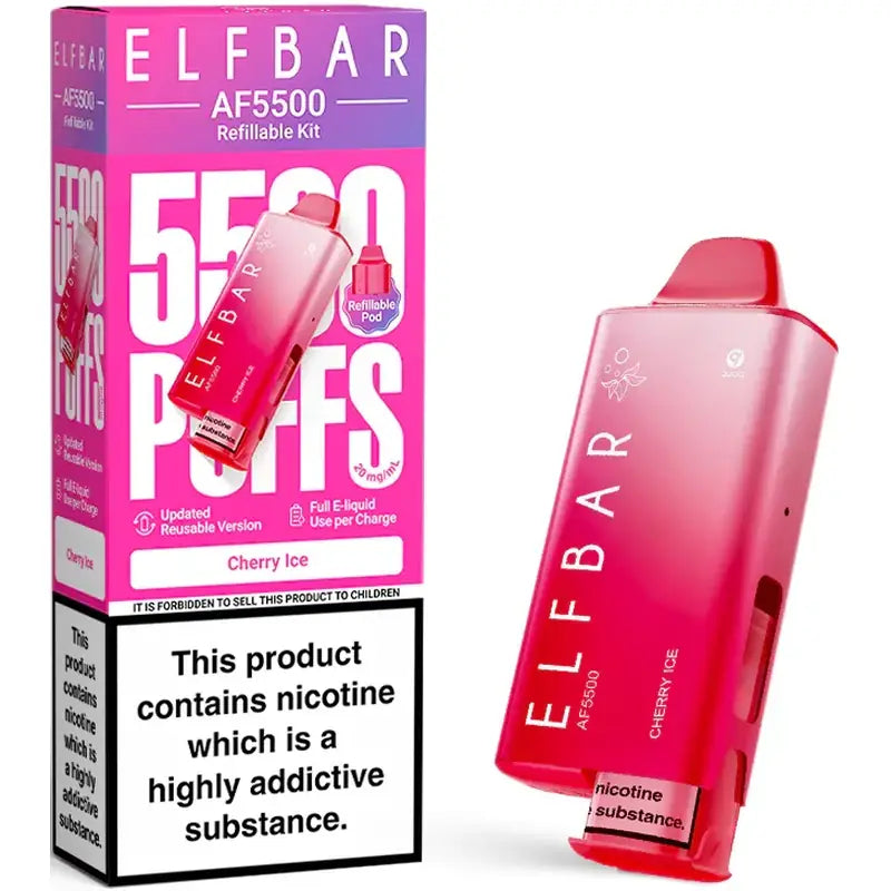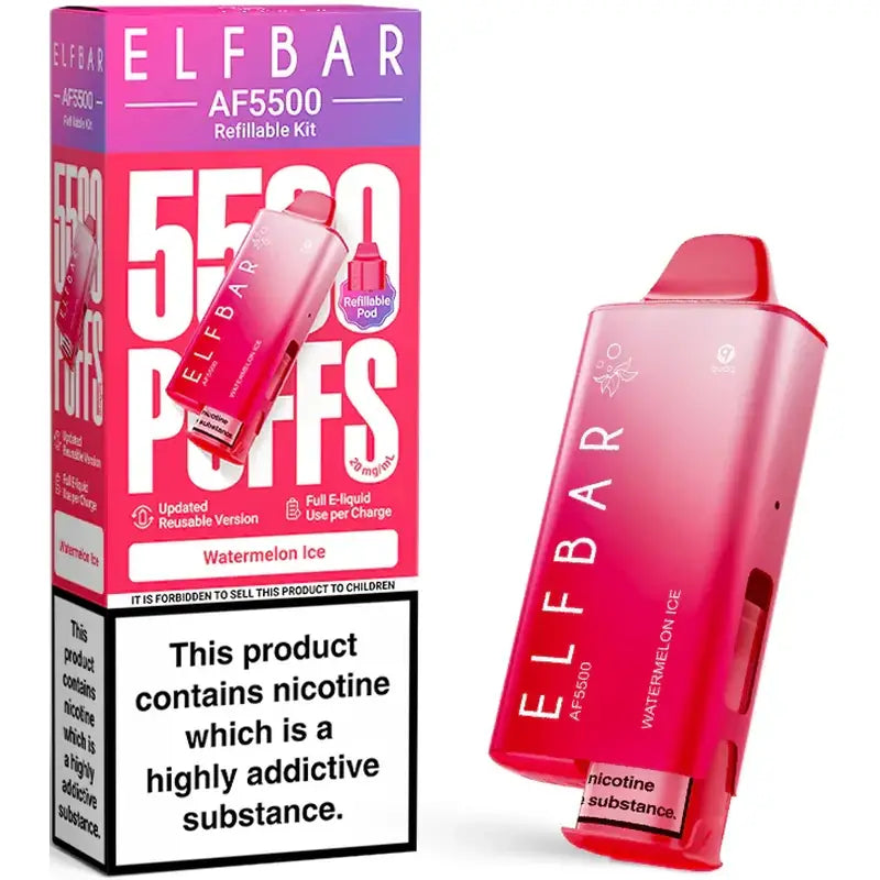 Meet the all-new Elf Bar AF5500, the upgraded prefilled pod vaoe kit from Elf Bar. Designed for users who love simplicity with more value, this kit delivers up to 5500 puffs from a 2ml prefilled pod paired with a refillable 10ml container. Powered by a rechargeable 1000mAh battery and built with a mesh coil for smooth MTL vaping, the AF5500 combines longevity, flavour, and convenience into a slim, lightweight design.