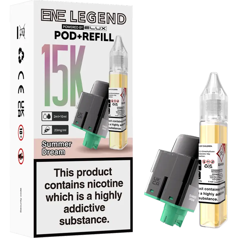 Stay stocked. Stay satisfied. This replacement set includes a 2 ml pod with a built-in mesh coil plus a 10 ml refill container, pre-formulated at 20 mg nicotine for smooth, consistent MTL vaping. Designed exclusively for the ENE Legend 15K device.