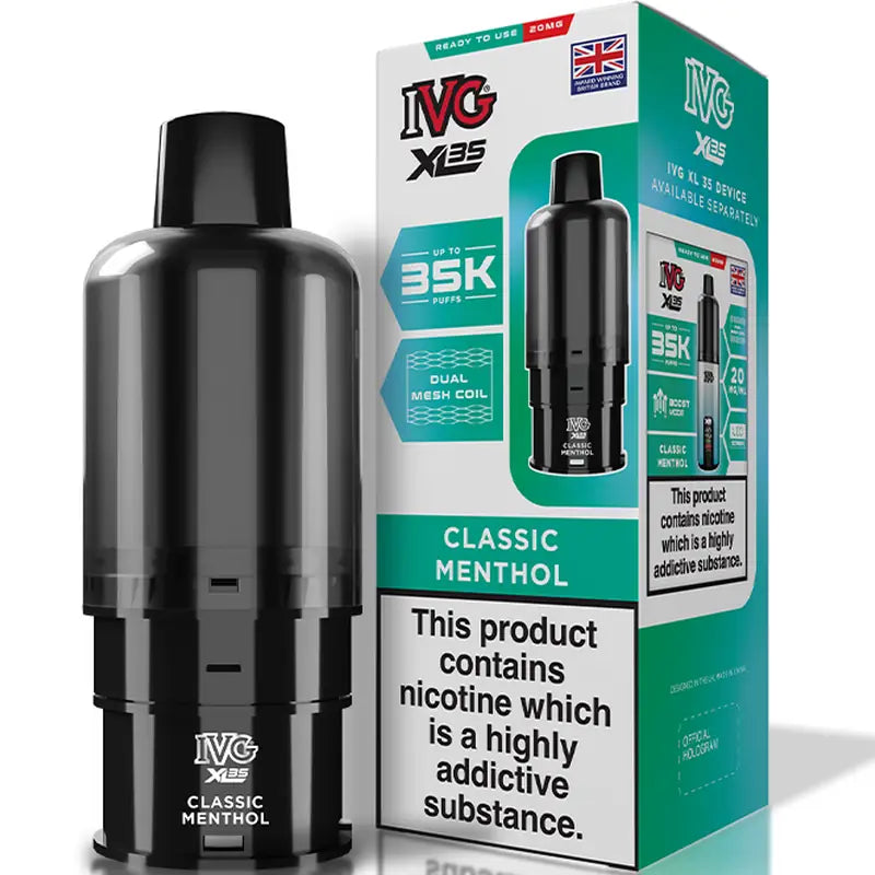 Snap in. Vape on. These prefilled pods are built for the IVG XL 35K Refill Pod, delivering clean MTL flavour in all the same blends you love. Each pod uses 20 mg nicotine salts for a smooth, satisfying hit and comes ready to use no filling, no mess.