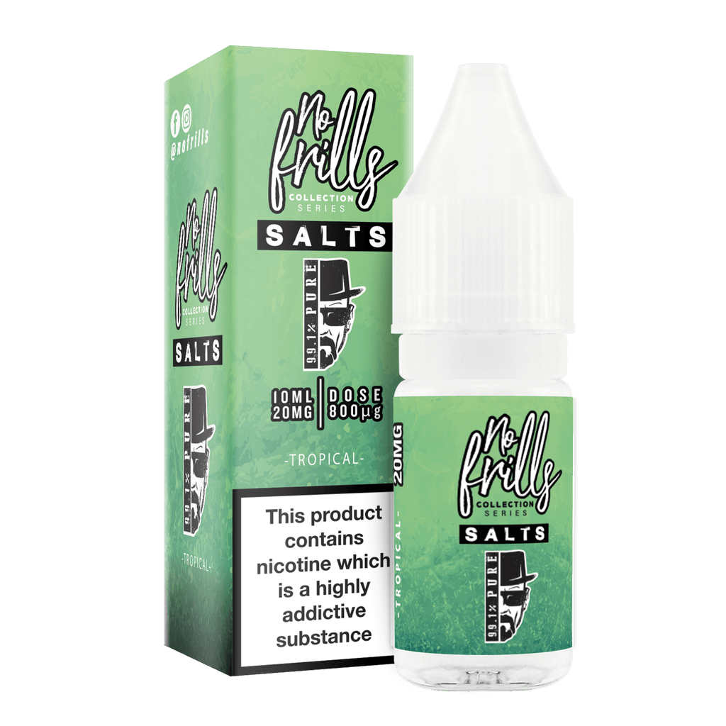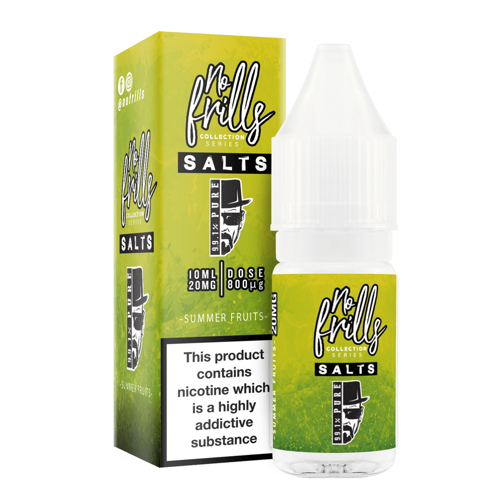 No Frills 99.1% Pure 10ml Nic Salt E-Liquid. No Frills are a fantastic range of affordable, fruity and flavourful vape E-Liquids. Multiple ranges and flavours to choose from.