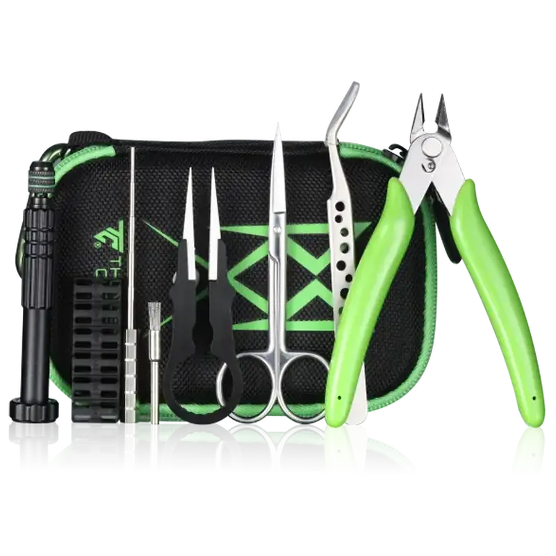The Recoil Pro Tool Kit is a compact, pro-grade set for builders who demand precision, reliability, and portability. Co-developed with ThunderCloud and Grimm Green, every tool is selected to make modern coil building faster and cleaner—from wire cutting and coil wrapping to cotton trimming and deck tuning. Housed in a rugged, lockable case with dedicated compartments, it’s the ultimate companion for workbenches and on-the-go build mats alike.