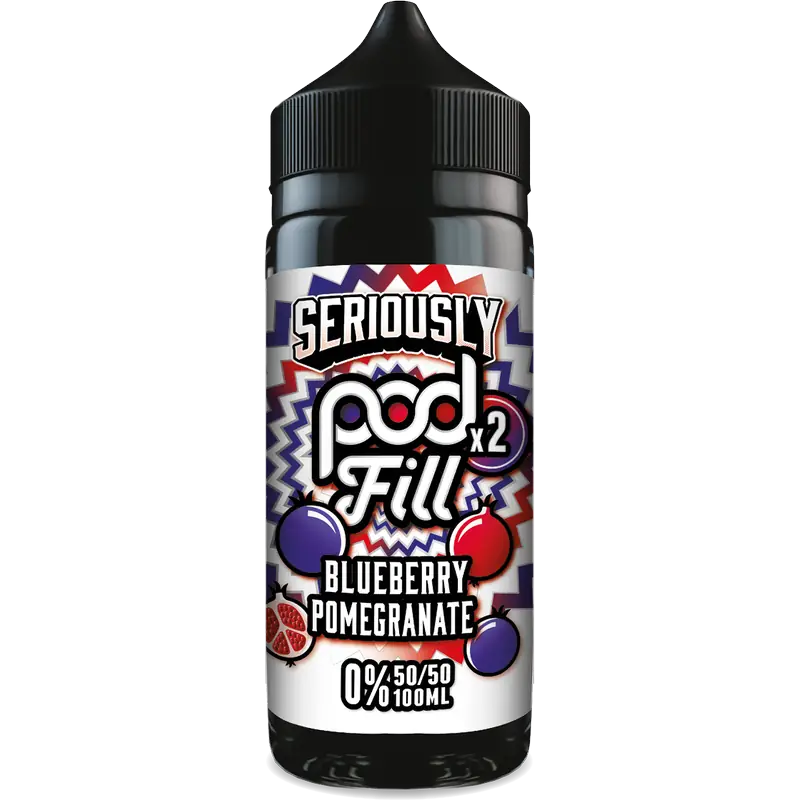 Blueberry Pomegranate Doozy Seriously Podfill 100ml Shortfill uses a 50 percent VG blend to support thick vapour production and full fruit clarity. This ratio allows the creamy blueberry sweetness and tart pomegranate notes to shine best in pod kits and MTL tanks.