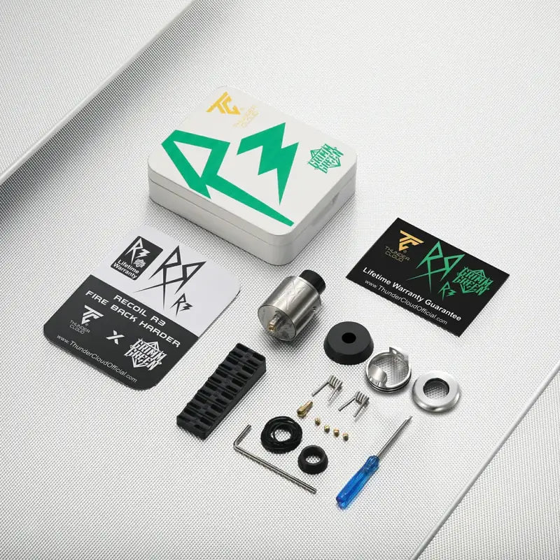 Precision meets passion. The third evolution of the iconic Recoil series is here. Co-designed with GrimmGreen, the Recoil R3 RDA couples a refined angled postless build deck with dual airflow chambers and interchangeable top caps for uncompromising flavour and vapour. Built from robust stainless steel and backed by ThunderCloud’s lifetime warranty, it’s engineered to perform and to last.