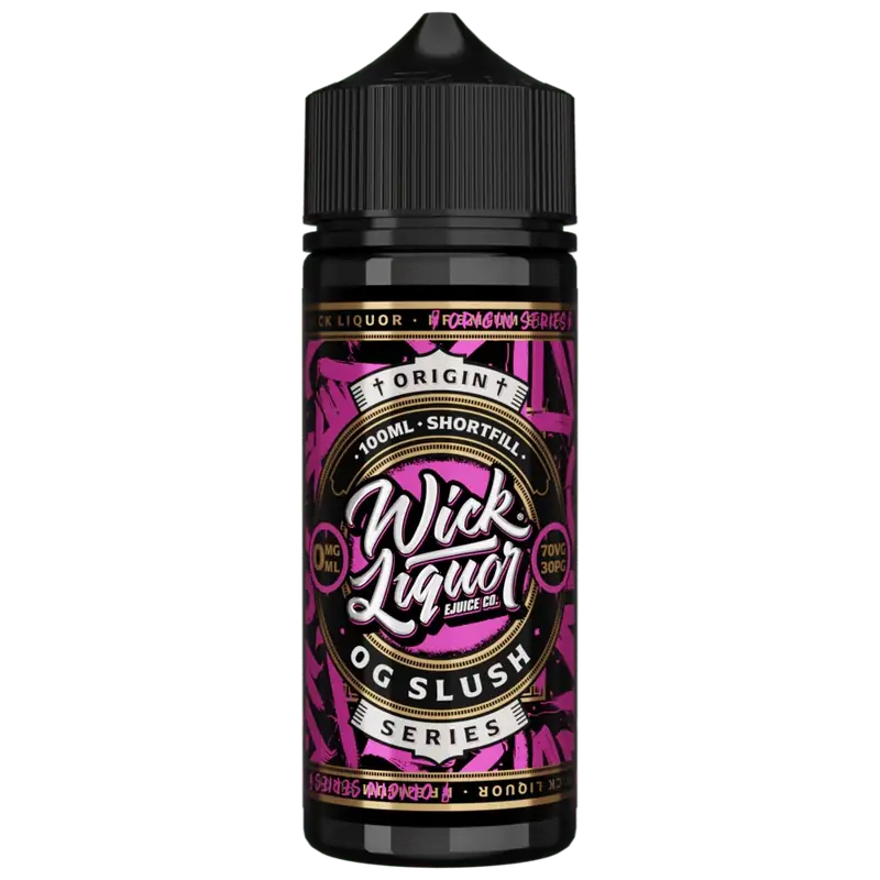 Wick Liquor OG Slush is a 100ml shortfill e-liquid that captures the taste of a frozen berry slush blended with icy summer fruits for a seriously refreshing all-day vape. Made in the UK by Wick Liquor (shop the Wick Liquor collection), it’s built for big flavour and thick vapour thanks to its 70VG/30PG mix. Expect mixed berries up front, followed by a crisp, cooling ice finish that keeps every pull clean and chilled. This one is best suited to DTL vapers using sub-ohm kits who want a fruity blend with an authentic “slush” cold hit. Supplied at 0mg nicotine, there’s room for two nic shots to tailor your strength.